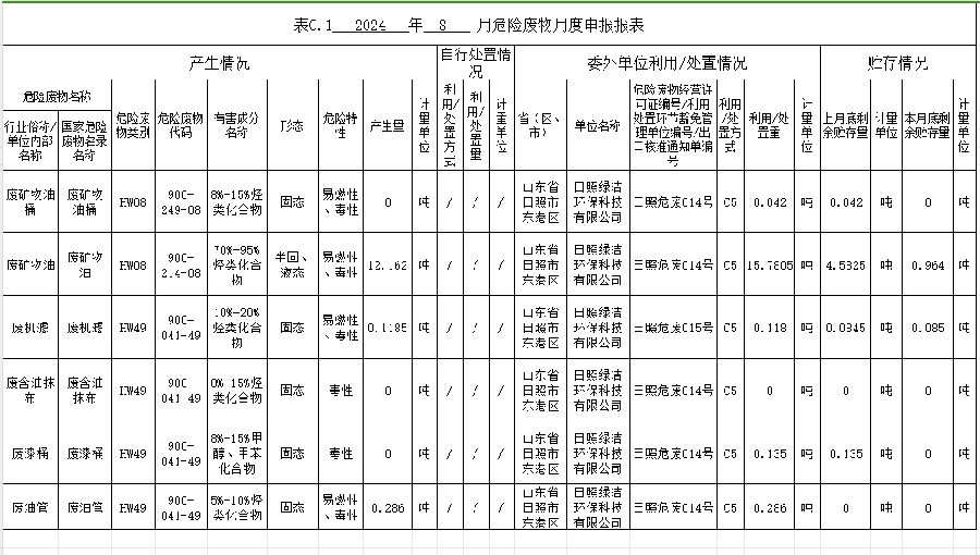 2024年8月危险废物月度申报报表
