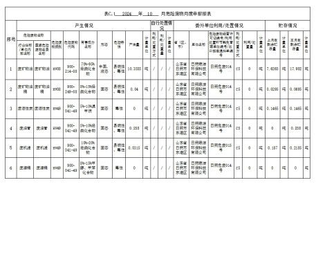 2024年10月危险废物月度申报报表