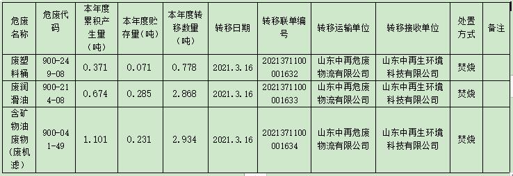 二、危废信息(时间节点:2021年1月1日至2021年4月1日)