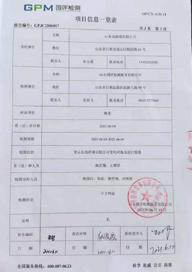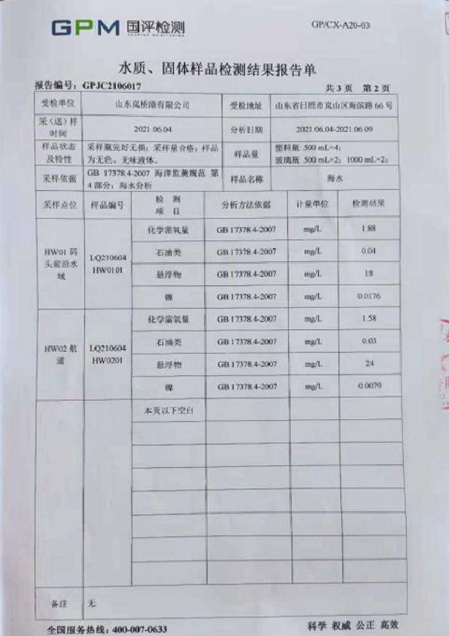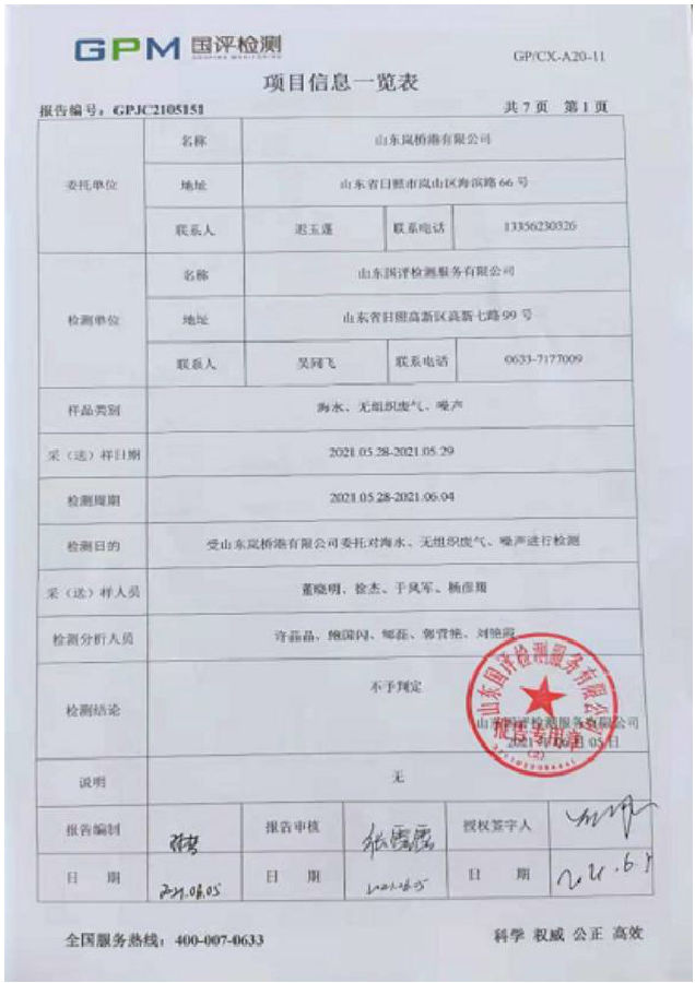 山东岚桥港有限公司第二季度环境定期检测报告公示