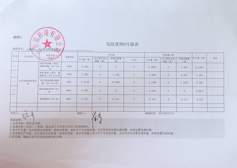 山东岚桥港有限公司月度危废产生量公示