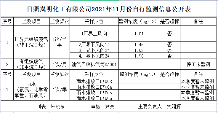 日照岚明化工有限公司2021年11月份自行监测信息公开表