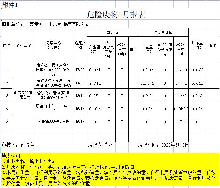 岚明化工危险废物2022年05月报表