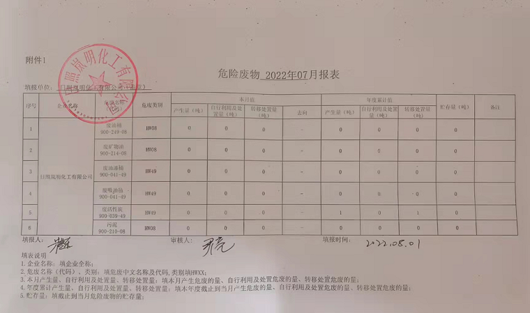 岚明化工危险废物2022年07月报表