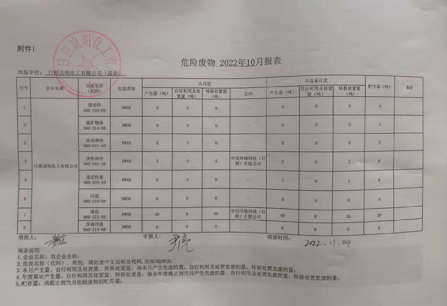 岚明化工危险废物2022年10月报表