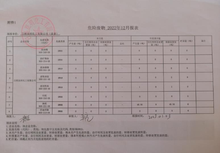 岚明化工危险废物2022年12月报表