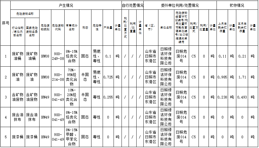山东岚桥港有限公司2023年1月危险废物公开信息表