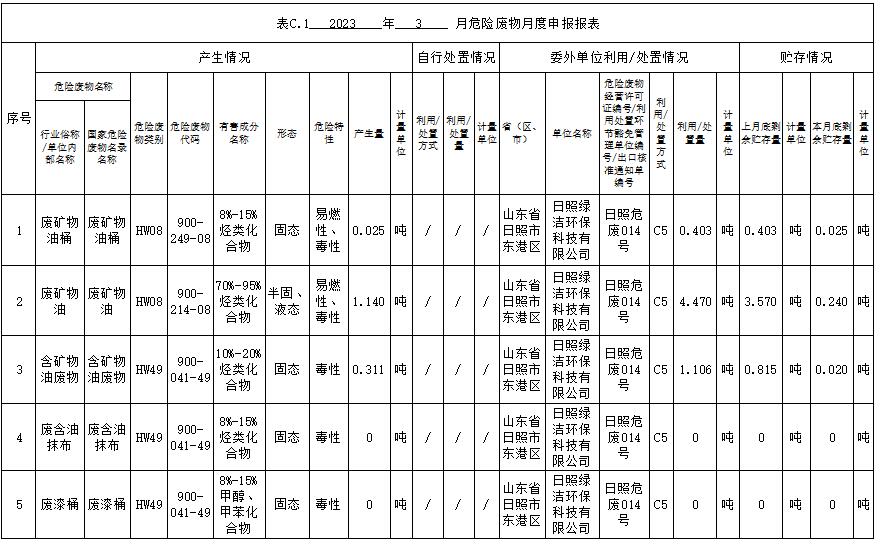 山东岚桥港有限公司2023年3月危险废物公开信息表