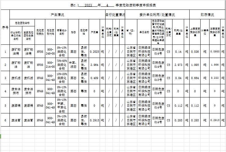 山东岚桥港有限公司2023年4季度危险废物公开信息表