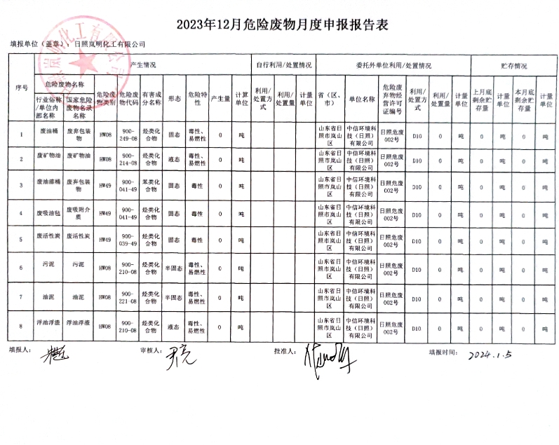 山东岚桥港有限公司2023年4季度危险废物公开信息表