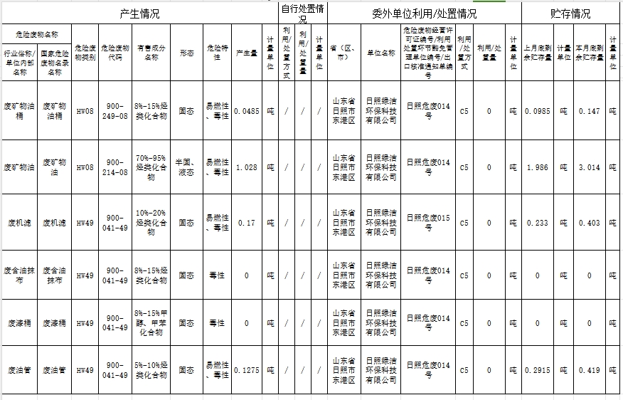 2024年1月危险废物月度申报报表